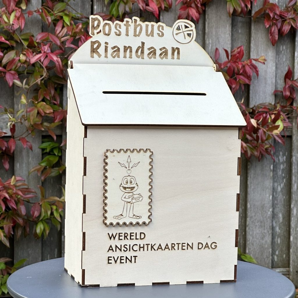 Gister was het 1 oktober en dat is World Postcard Day! En daarvoor heb ik deze toffe brievenbus gemaakt voor een Geocache Event van Rianda met een extra uitgesneden ‘postzegel’ op de voorkant.