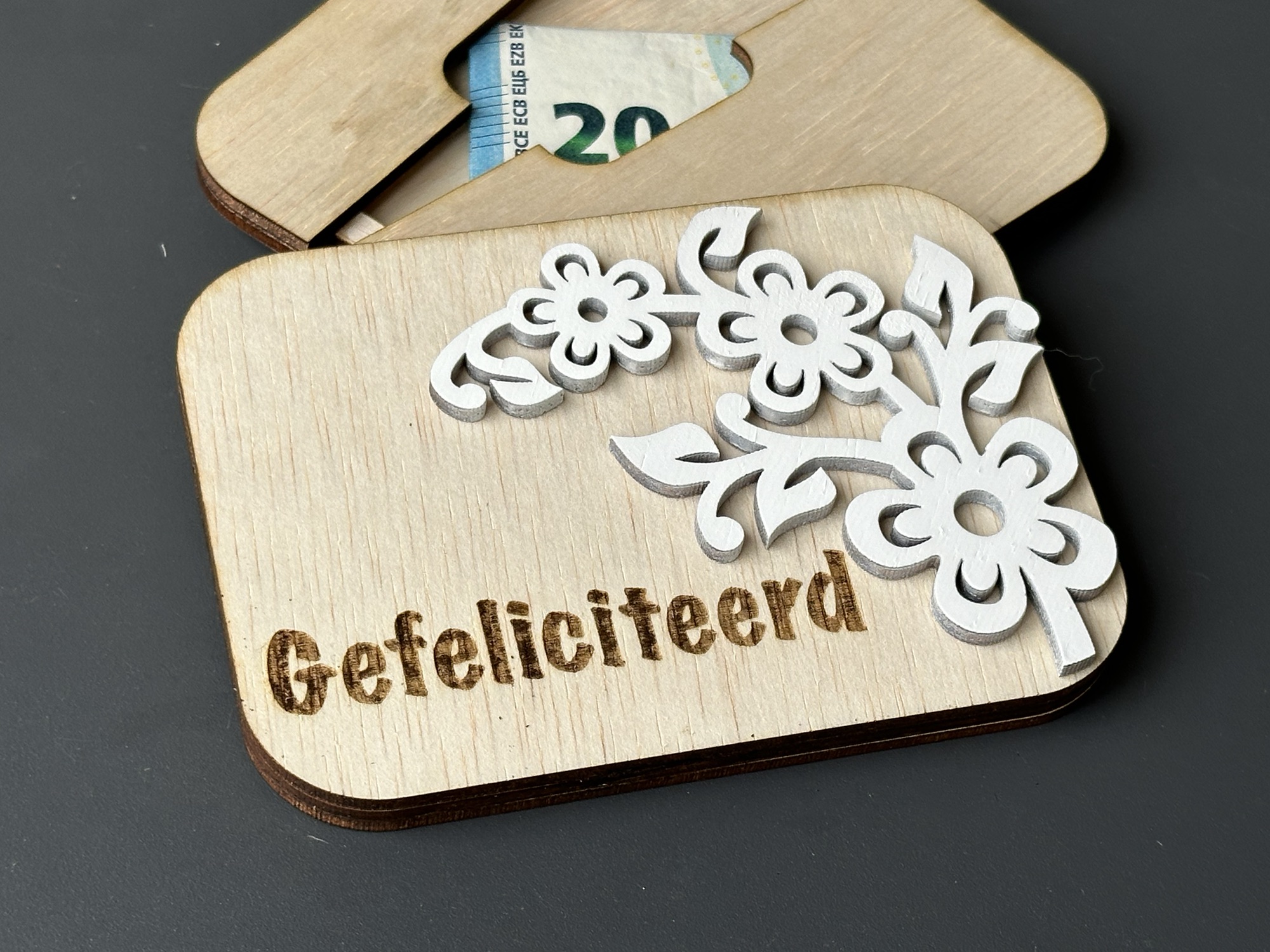 Met de houten geld enveloppen die ik heb gemaakt kun je iemand geld voor zijn verjaardag geven op een originele manier.