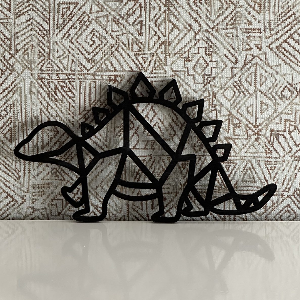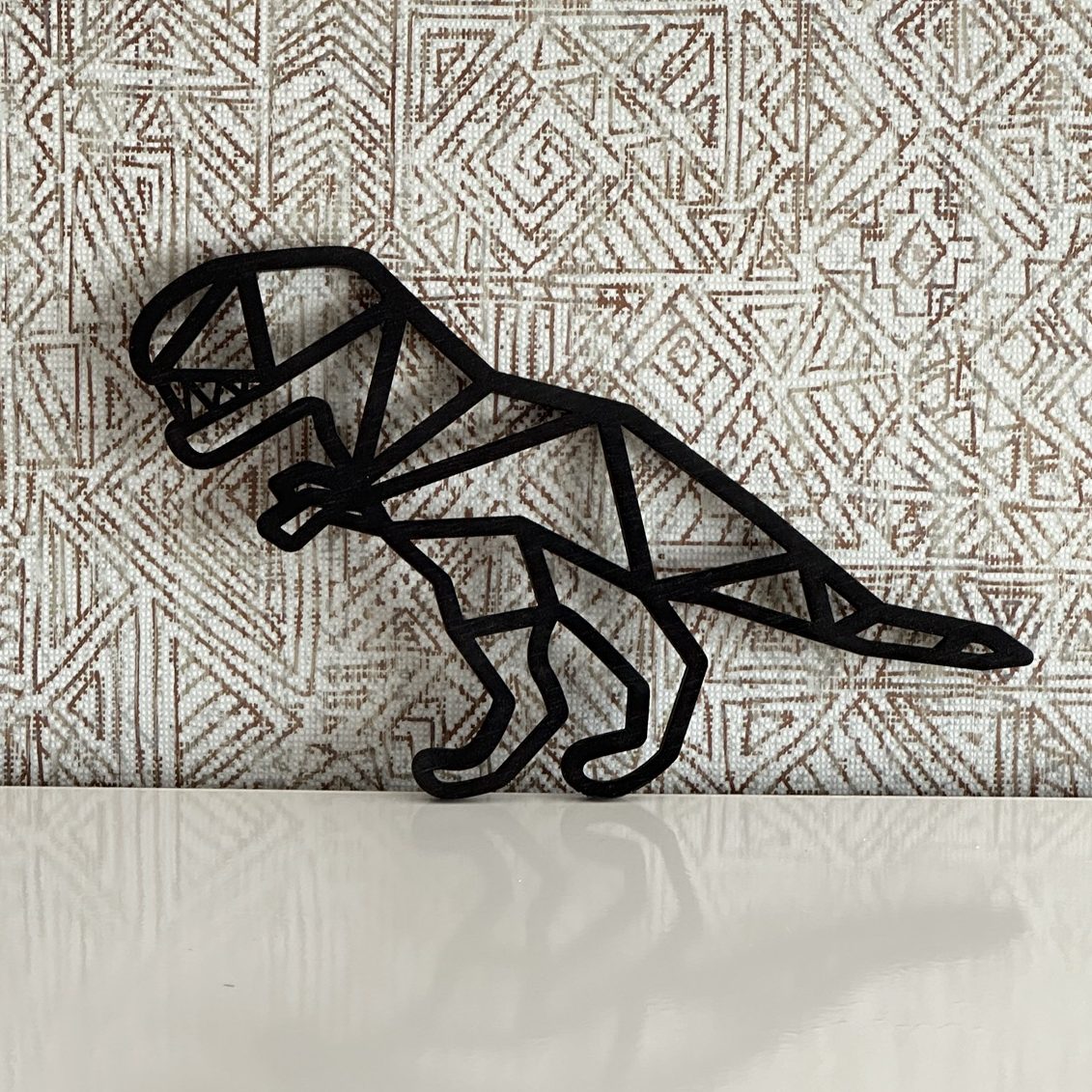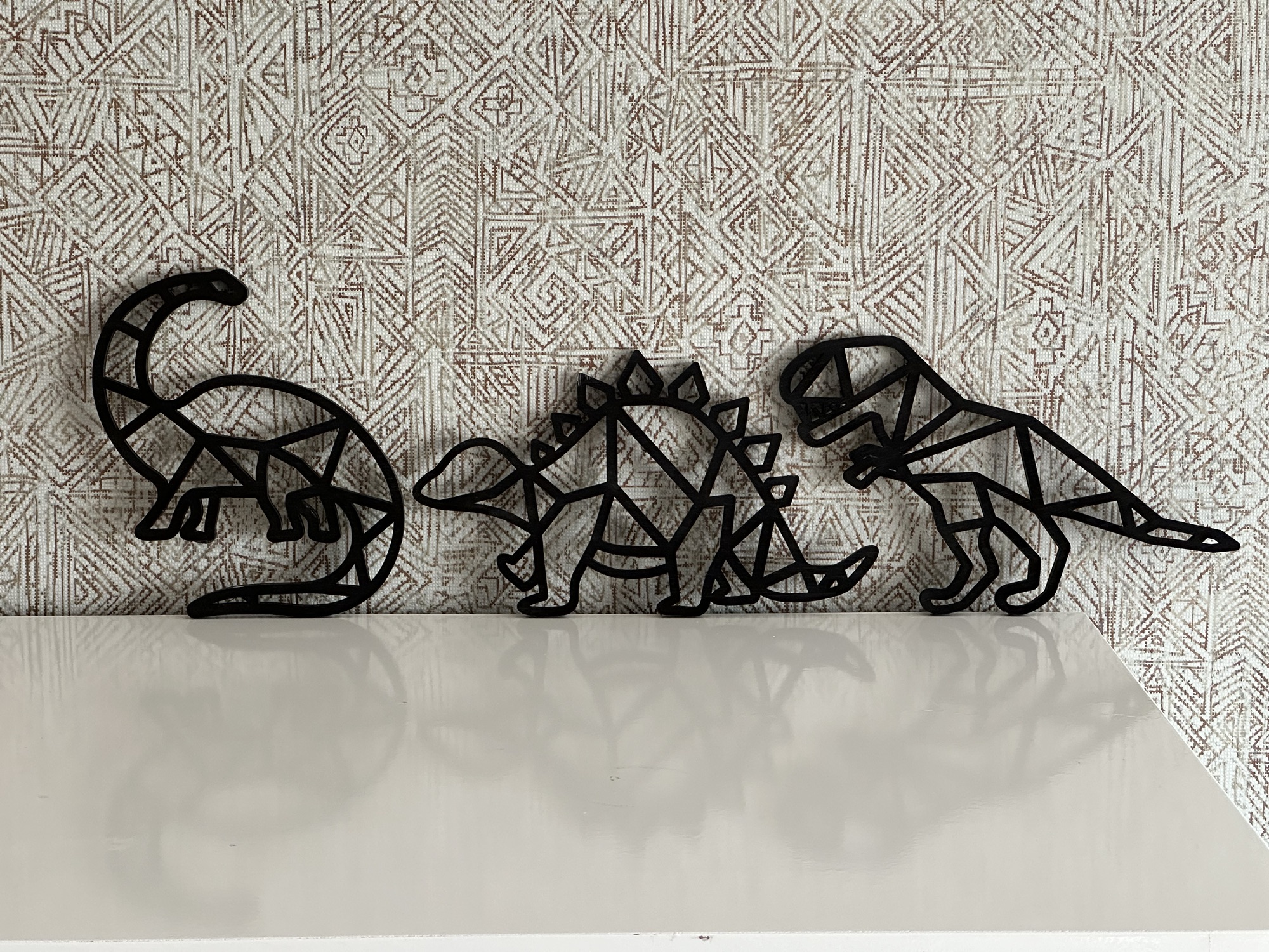 Maak de kinderkamer nog mooier met geometrische dierenvormen aan de muur. Bijvoorbeeld met een boerderij dier of een drieluik van dino’s die ik op verzoek voor iemand heb gemaakt.