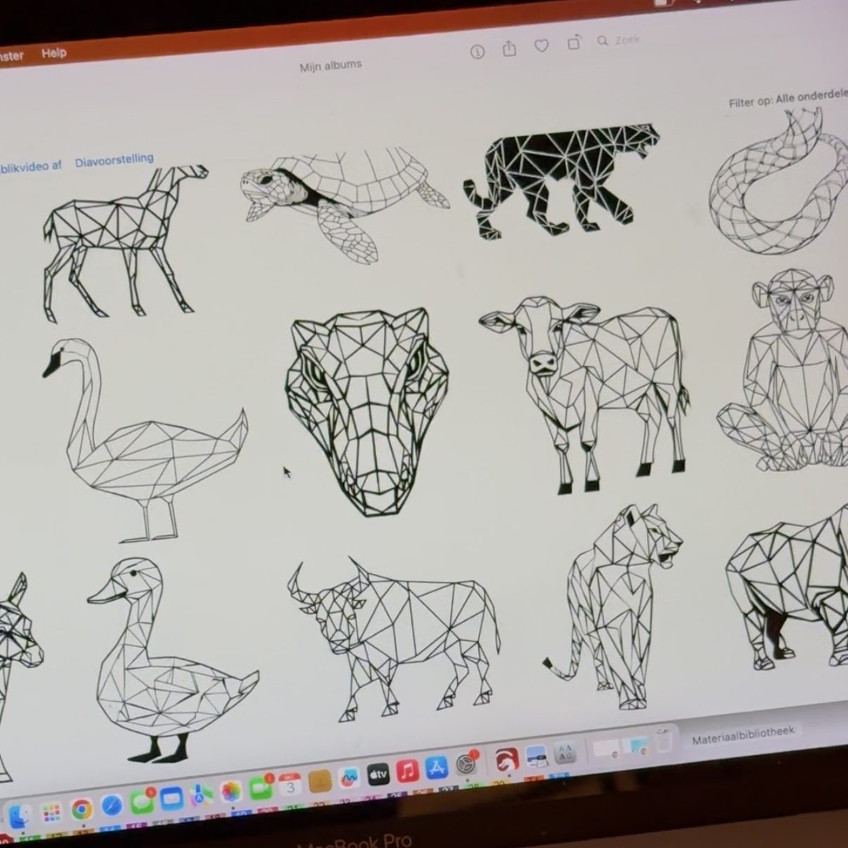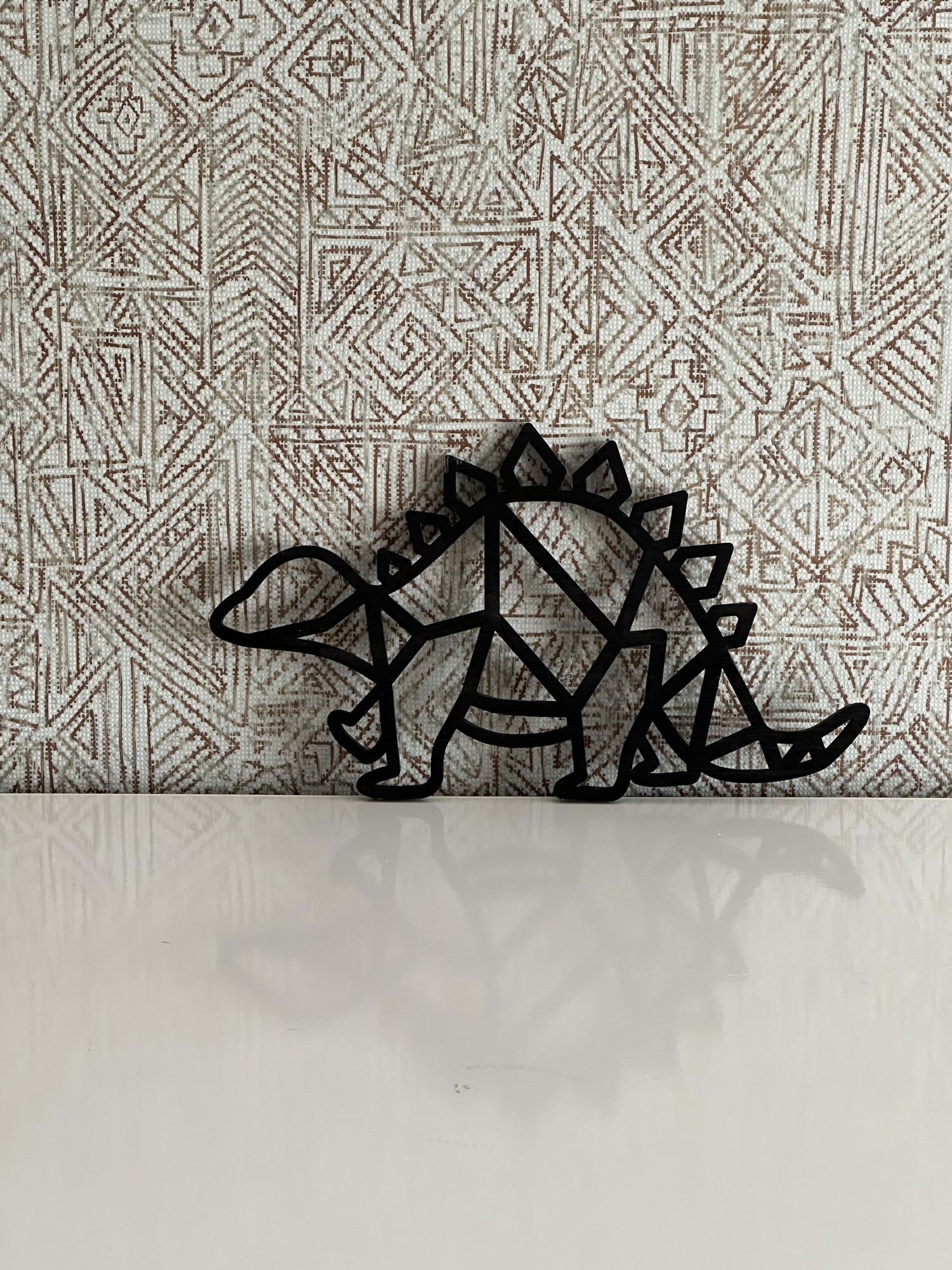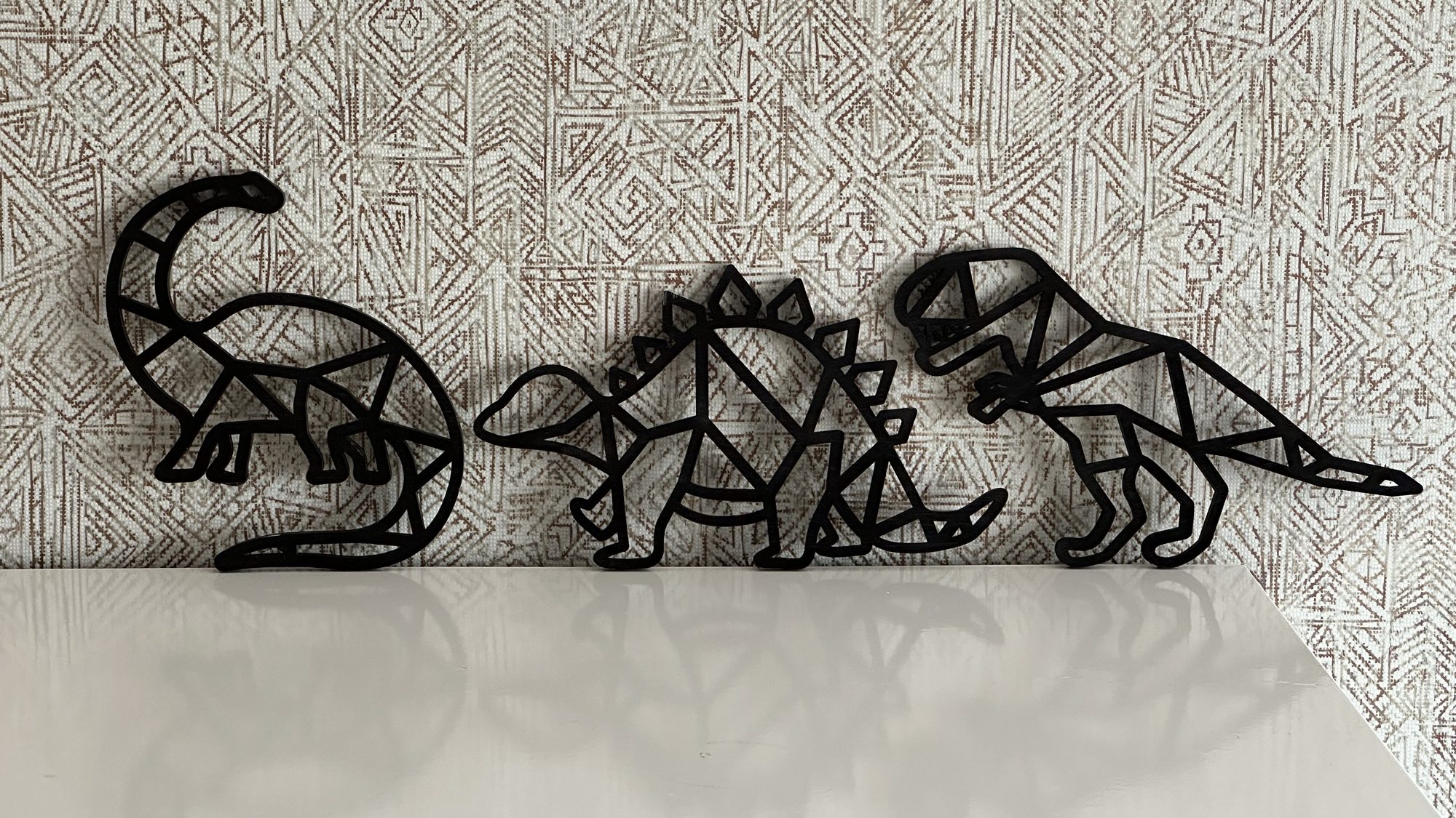 Maak de kinderkamer nog mooier met geometrische dierenvormen aan de muur. Bijvoorbeeld met een boerderij dier of een drieluik van dino’s die ik op verzoek voor iemand heb gemaakt.