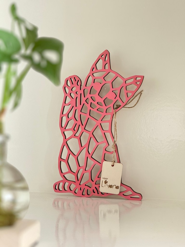 Laat in een bericht weten welk dier jij graag aan de muur wil en welke kleur. Want zwart past natuurlijk niet in iedere kinderkamer ;). Je krijgt van mij eerst een digitaal voorbeeld van de vorm en als jij hem mooi vind ga ik hem maken!