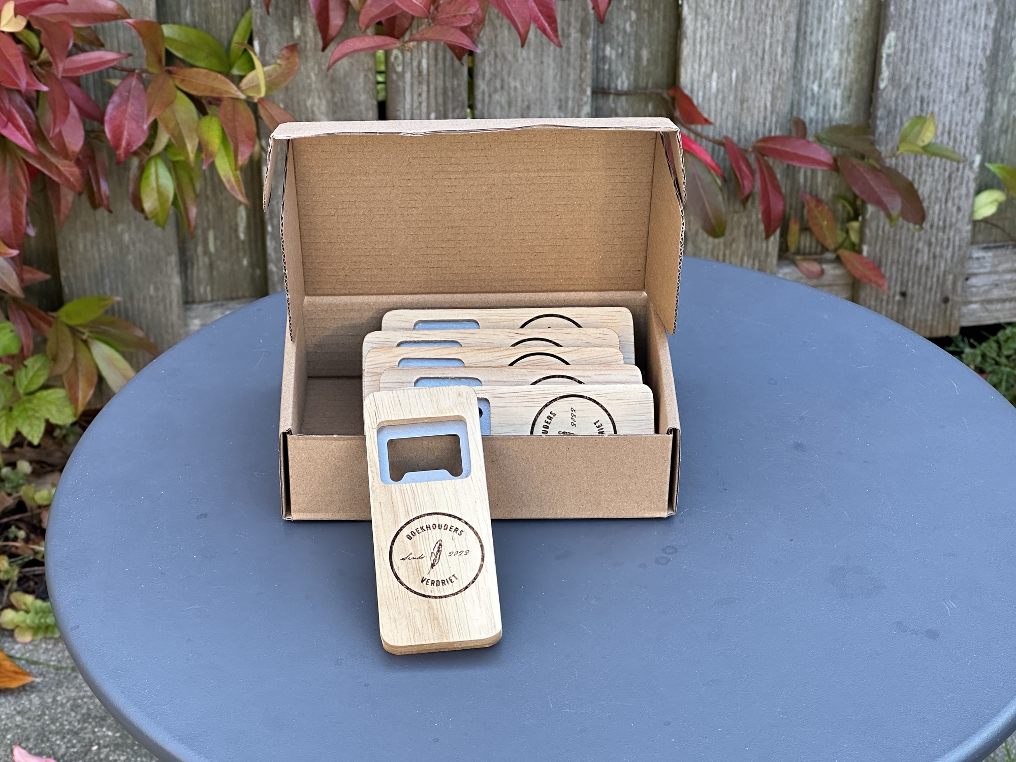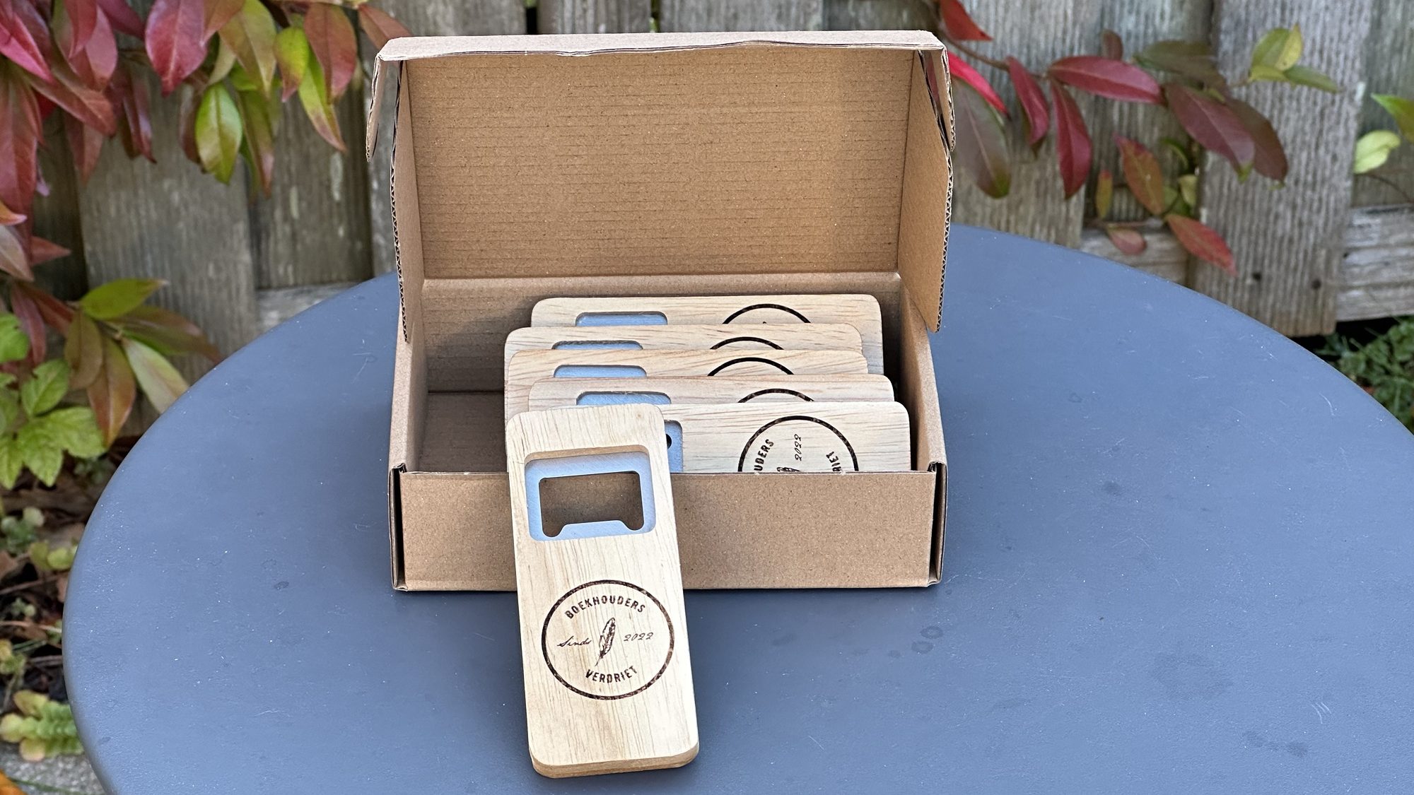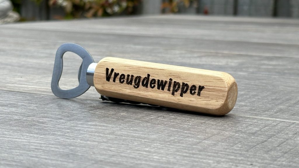 Die wijnkistjes met houtgravering zijn leuk. Maar als iemand liever bier drinkt? Kies dan de VREUGDEWIPPER die leuk gepersonaliseerd kan worden.