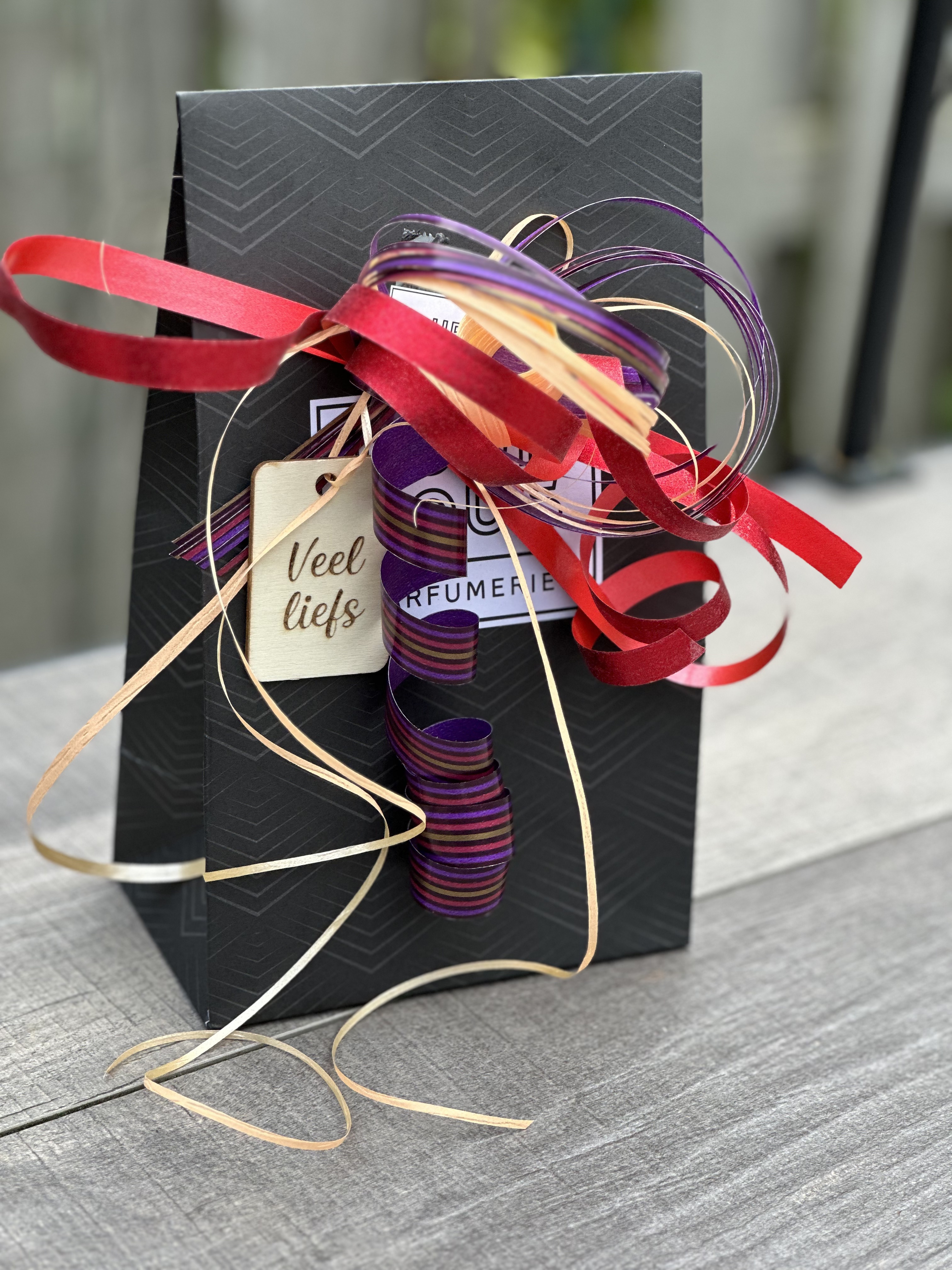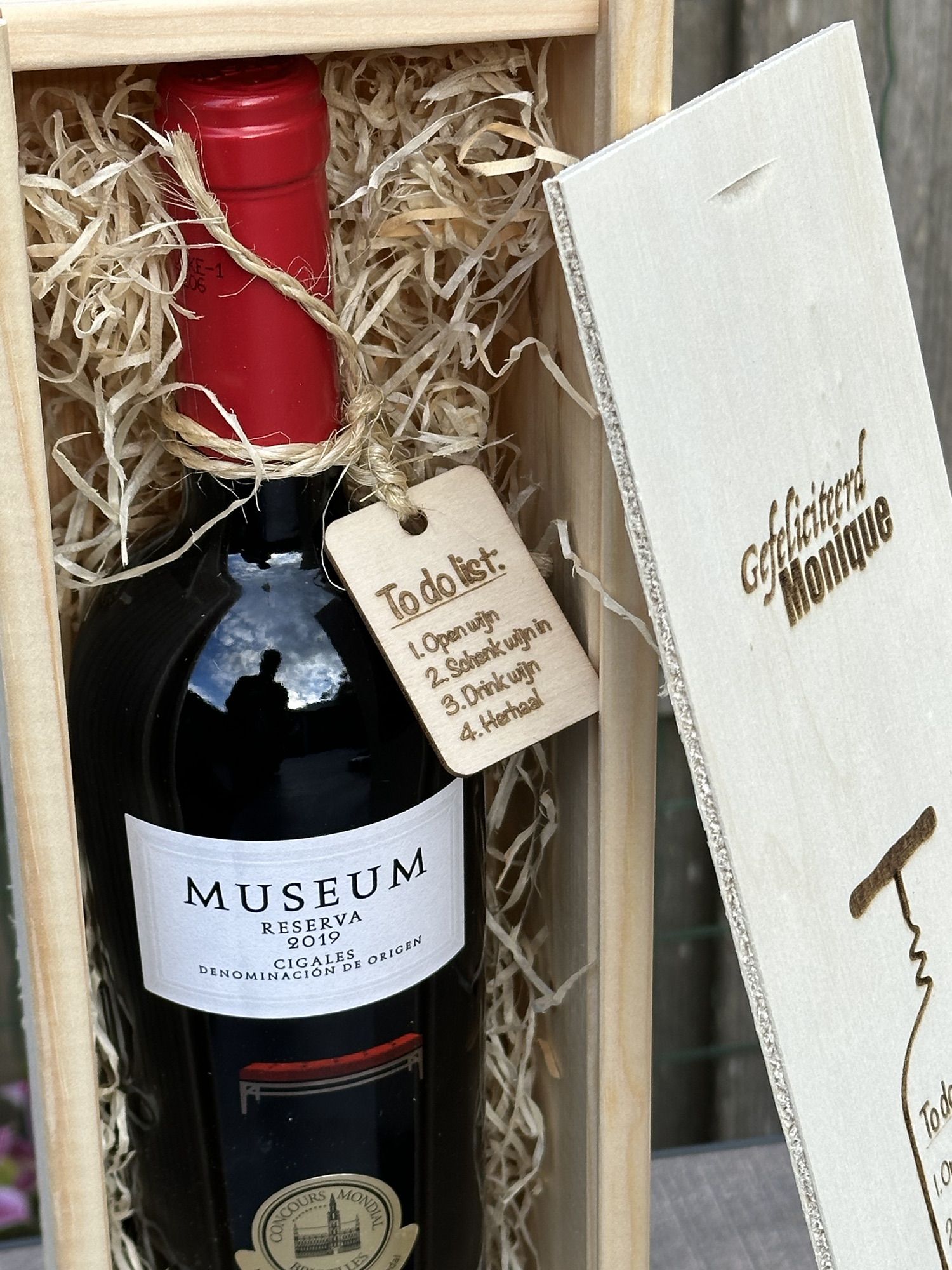 De houten cadeaulabel kan bijna overal aan gehangen worden! Zoals een ingepakt cadeautje, een fles wijn, een tasje, een bloemetje en vast nog veel meer! Hieronder alvast enkele voorbeelden maar ik zal binnenkort meer foto’s maken.