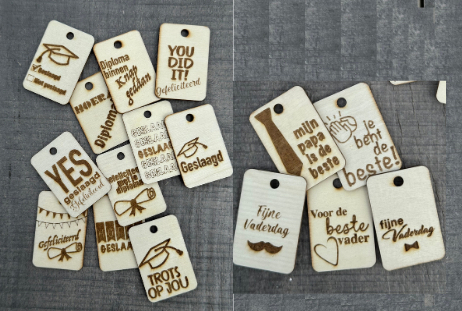 Bestellen kan per mail via danieldoets@gmail.com of via het bestelformulier https://form.jotform.com/danieldoets/houten-cadeaulabels.