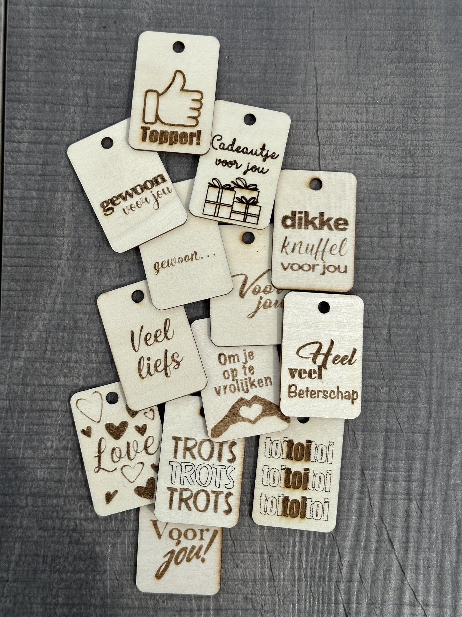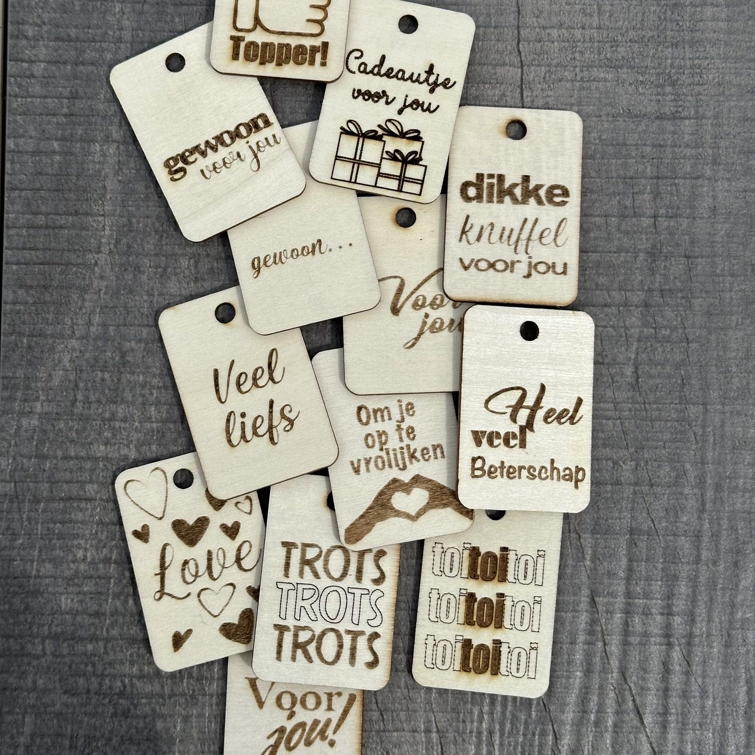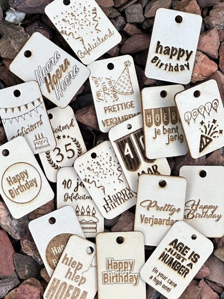 Een cadeautje geven is leuk. Met een kaart erbij is leuker. Maar met gepersonaliseerde houten cadeaulabel is het allerleukst!