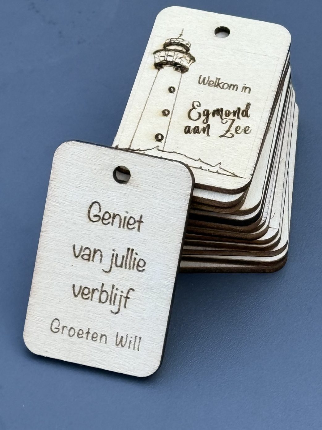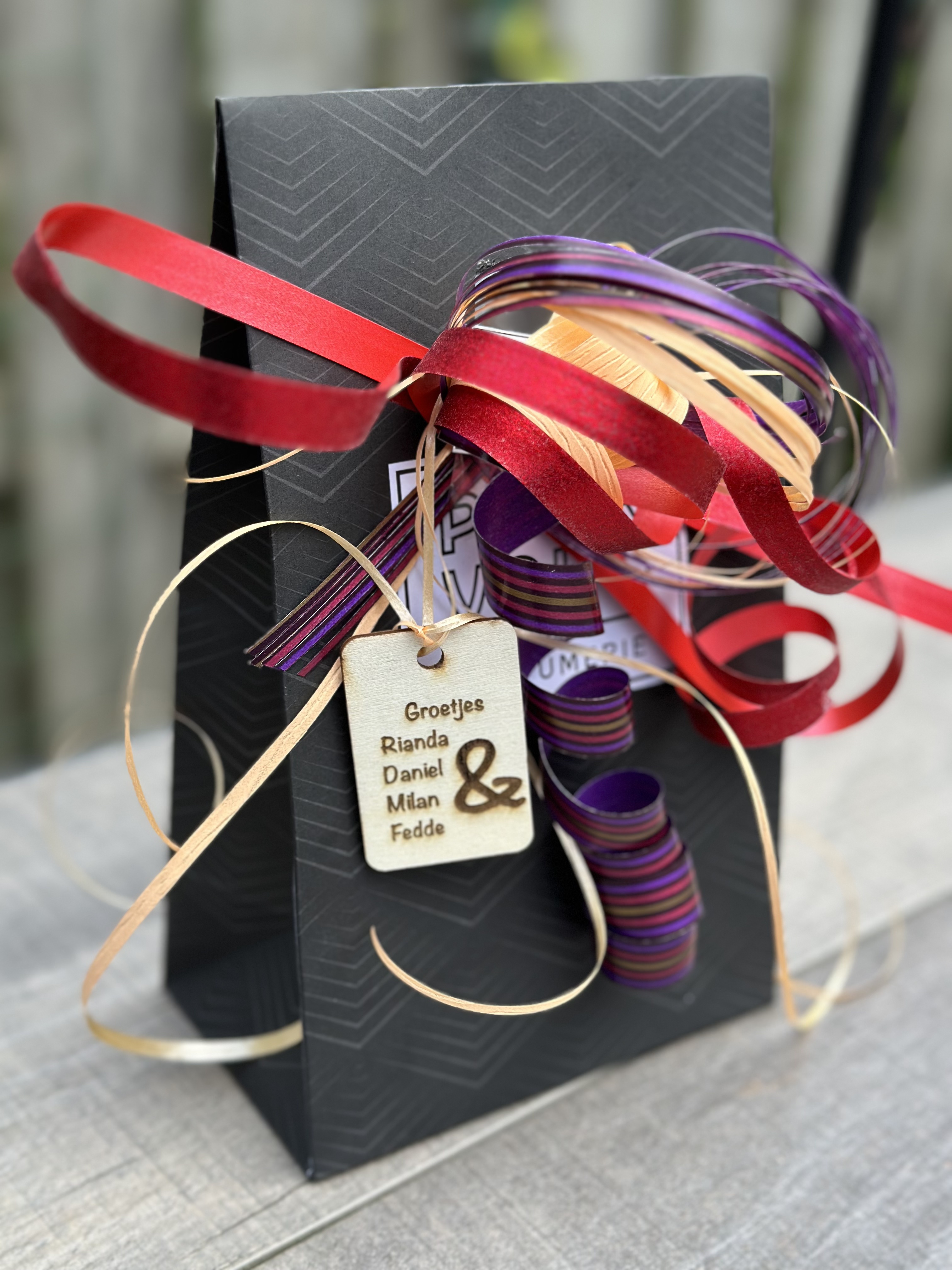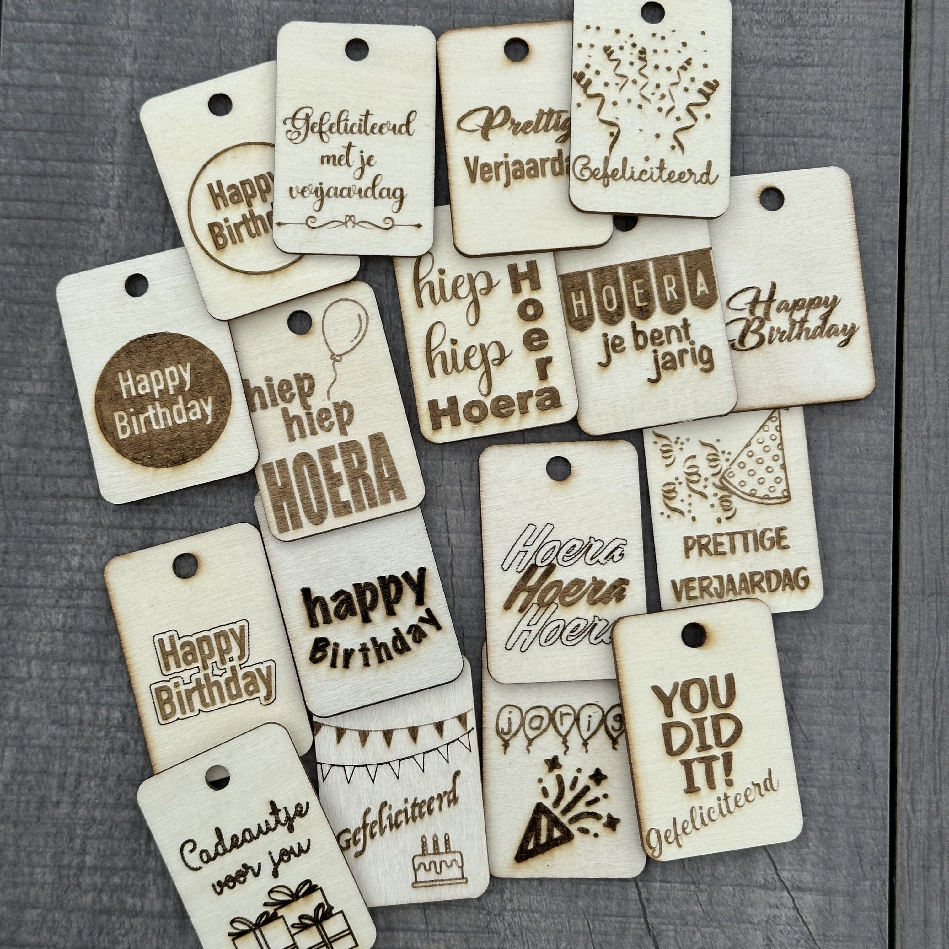 Een cadeautje geven is leuk. Met een kaart erbij is leuker. Maar met gepersonaliseerde houten cadeaulabel is het allerleukst!