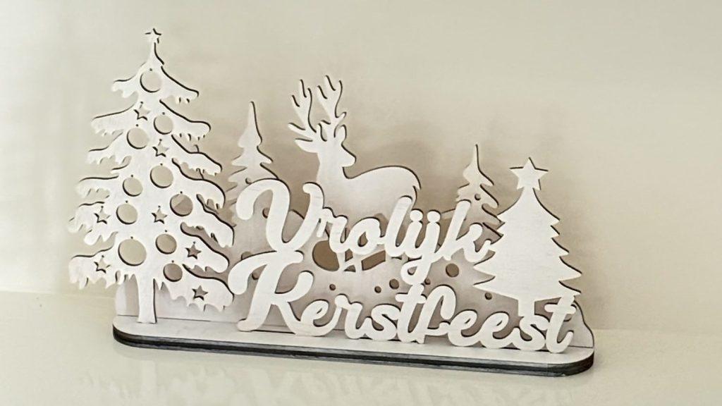 30cm breed en 20cm hoog. Je kan kiezen voor de teksten ‘Vrolijk Kerstfeest’, ‘Fijne Kerst’ en ‘Merry Christmas’. Deze decoratie kan in houtkleur of in het wit.