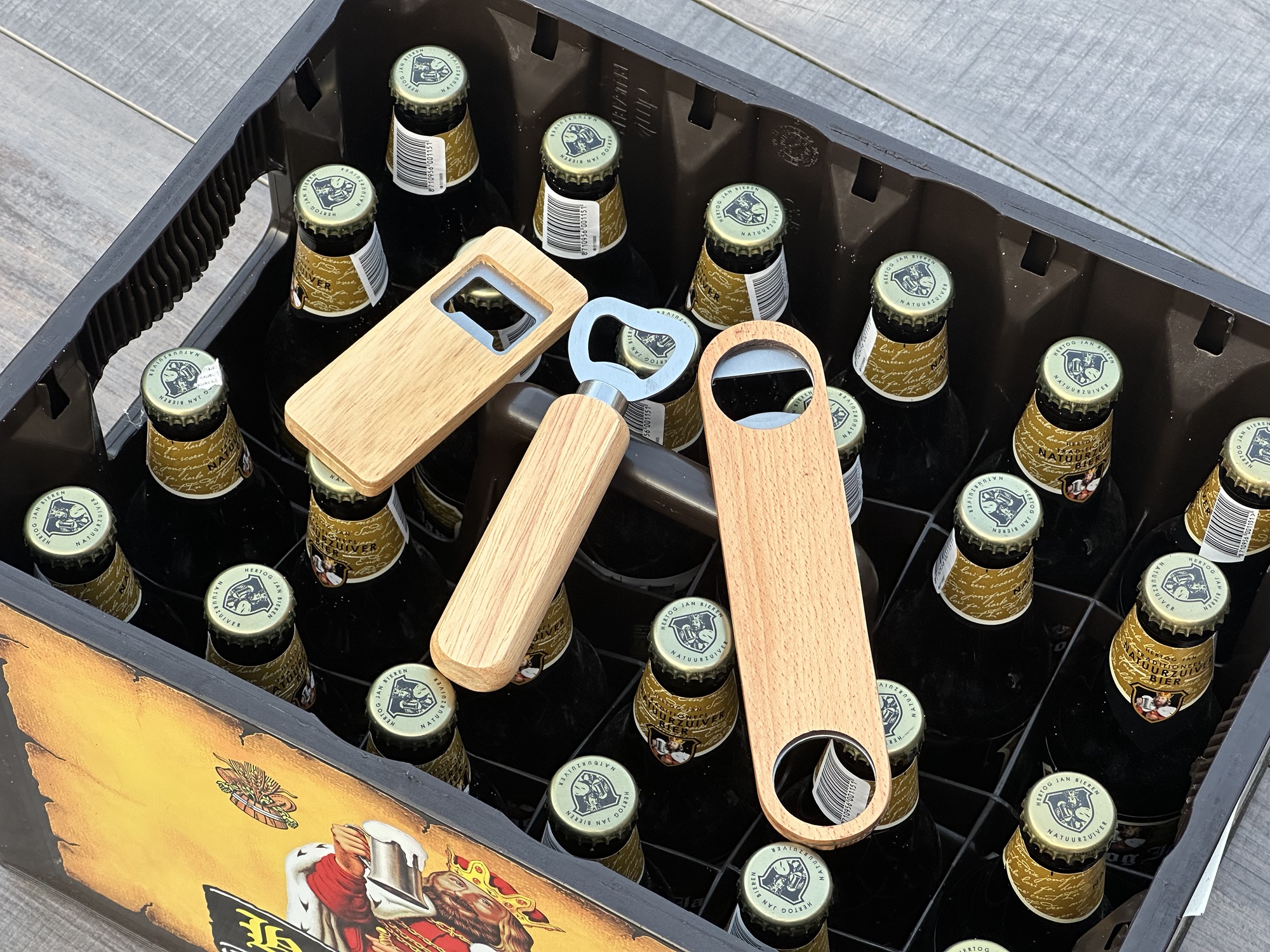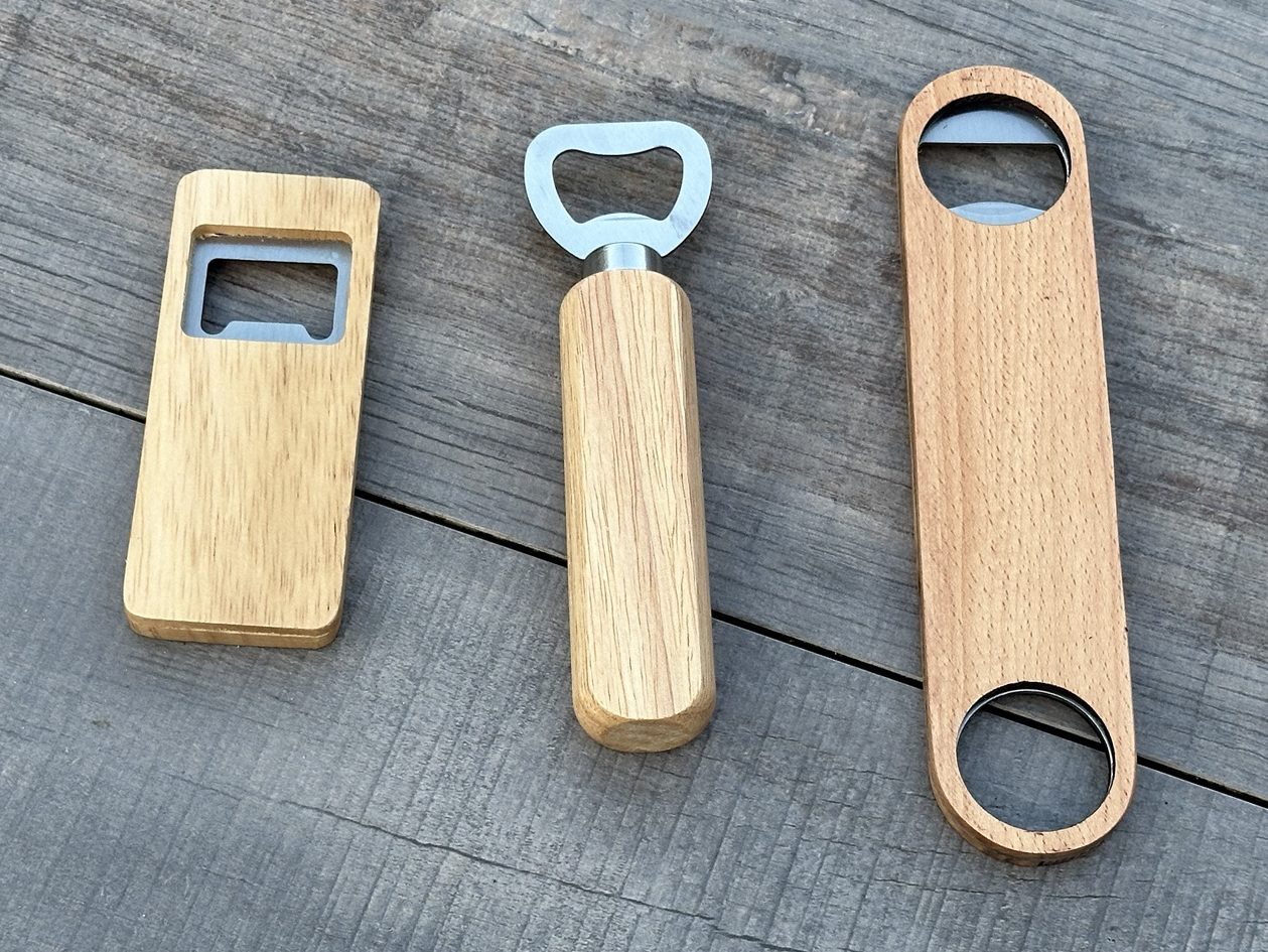 De twee linker bieropeners zijn € 4,- en de luxe rechts € 7,50 (beperkt op voorraad, meerdere aantallen hebben minimaal 3 weken levertijd)