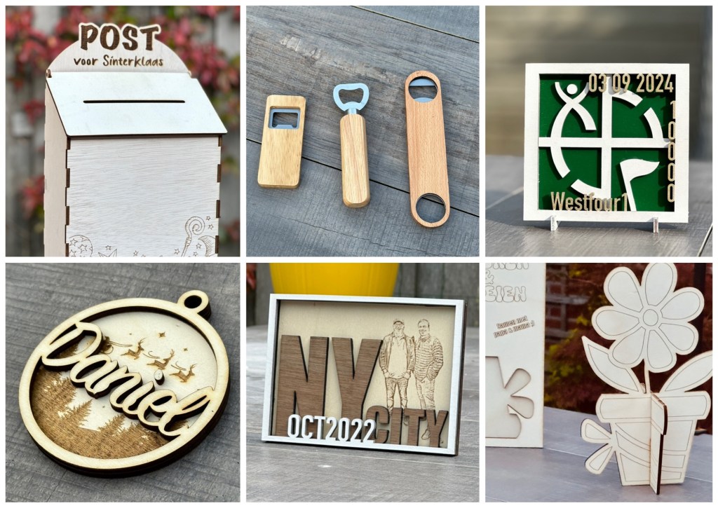 ‘Platte’ cadeaubonnen op hout kunnen ook gemaakt worden, ontwerpen volgen nog. Eigenlijk is het een uitgeprinte cadeaubon op hout en kost €2,50.