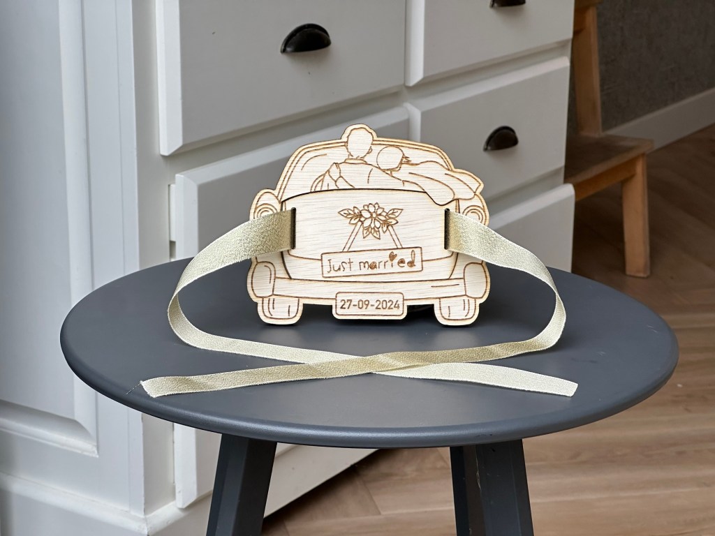 Geld in een gewone witten enveloppe of in houten cadeau enveloppe? Of het een bruiloft is of gewoon een verjaardag waar iemand ‘NIETS’ wil hebben, het kan allemaal. Op de achterkant komt jouw persoonlijke boodschap om het nog persoonlijker te maken.