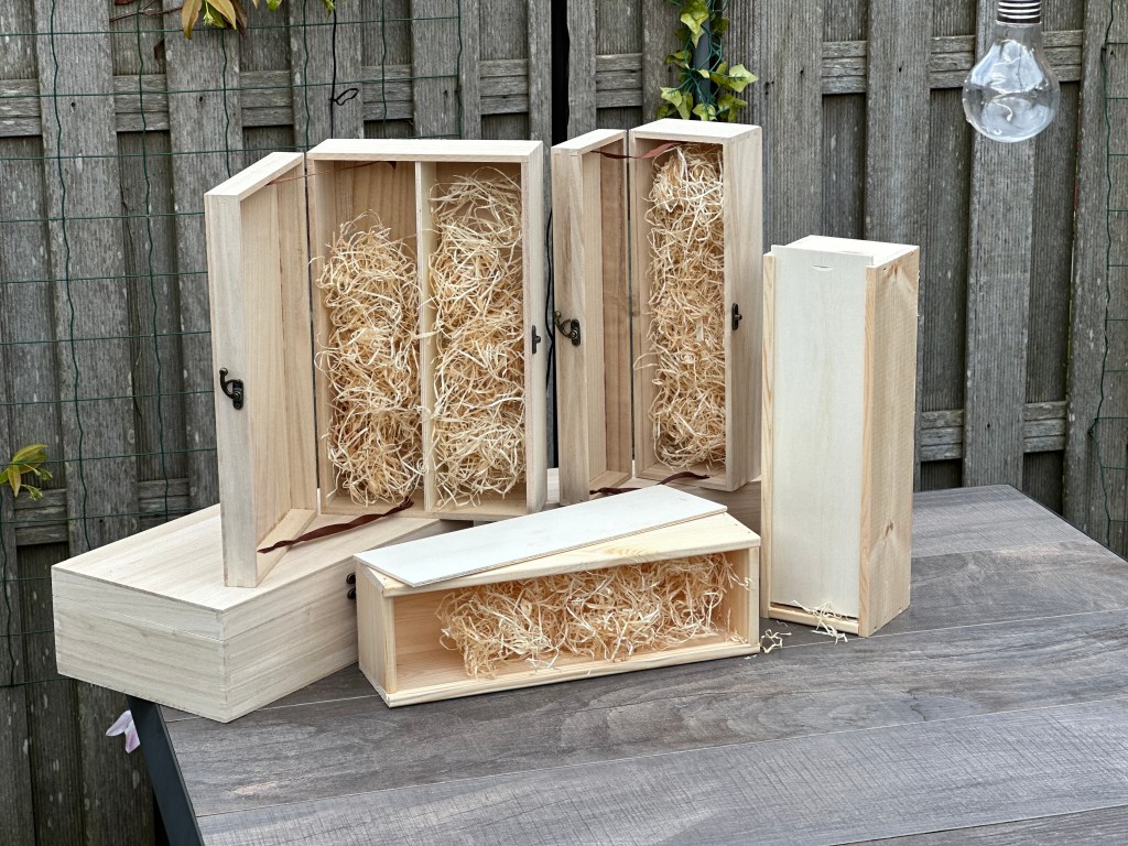 Grotere kisten met bijvoorbeeld 3-vaks of champagne zijn mogelijk. Neem daarvoor contact met mij op.