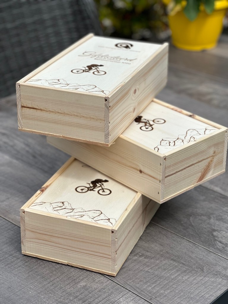 Als de 1-vaks en 2-vaks kisten niet groot genoeg zijn? Kisten voor 3, 4, 5 en zelfs tot 6 flessen zijn mogelijk!